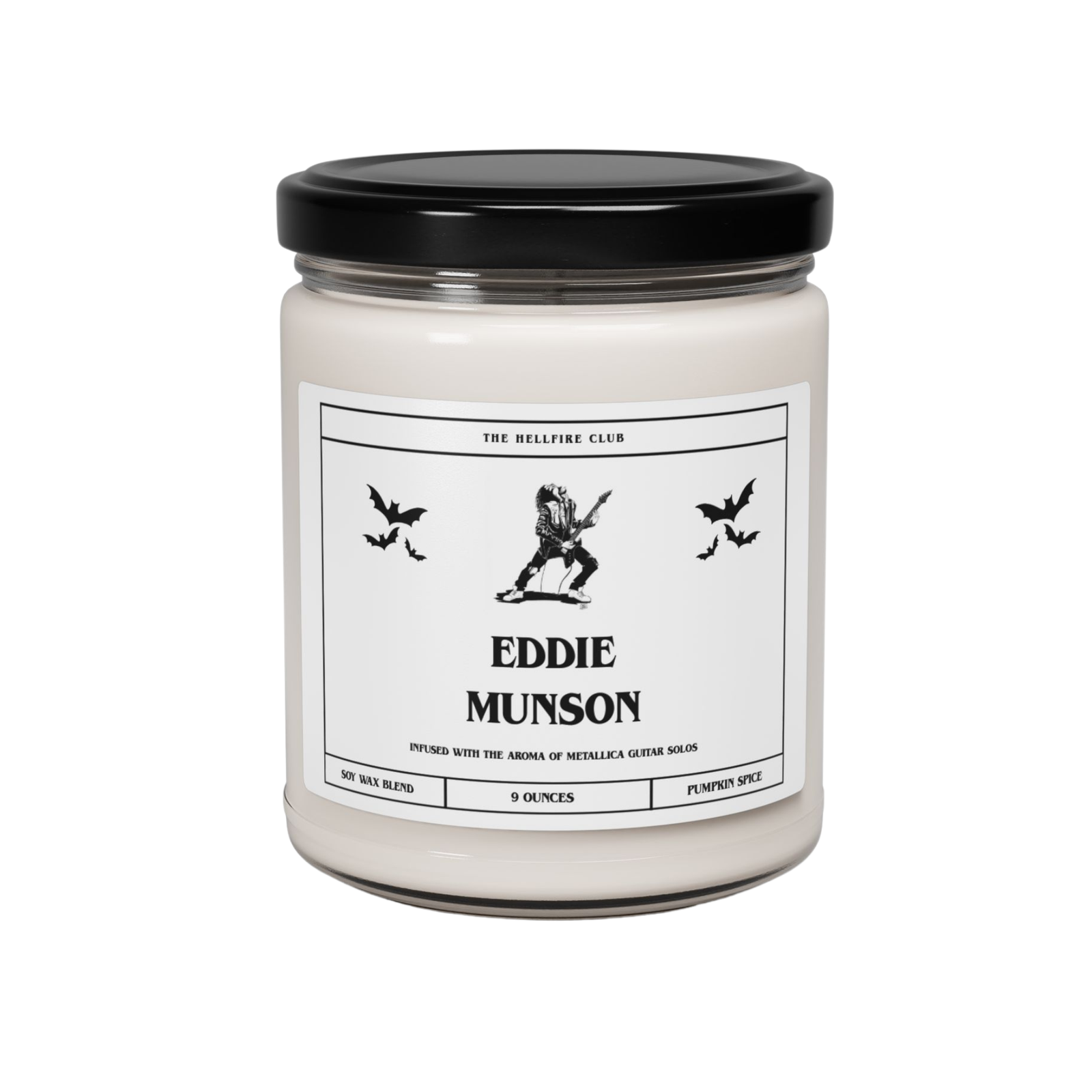 Hand-poured in small batches with a clean-burning soy wax blend, each candle is finished with eco-friendly cotton wicks for a safe, long-lasting burn. Whether you’re binging Stranger Things, rolling dice with friends, or rocking out to your favorite playlist, this candle brings Eddie’s fearless energy straight into your space.